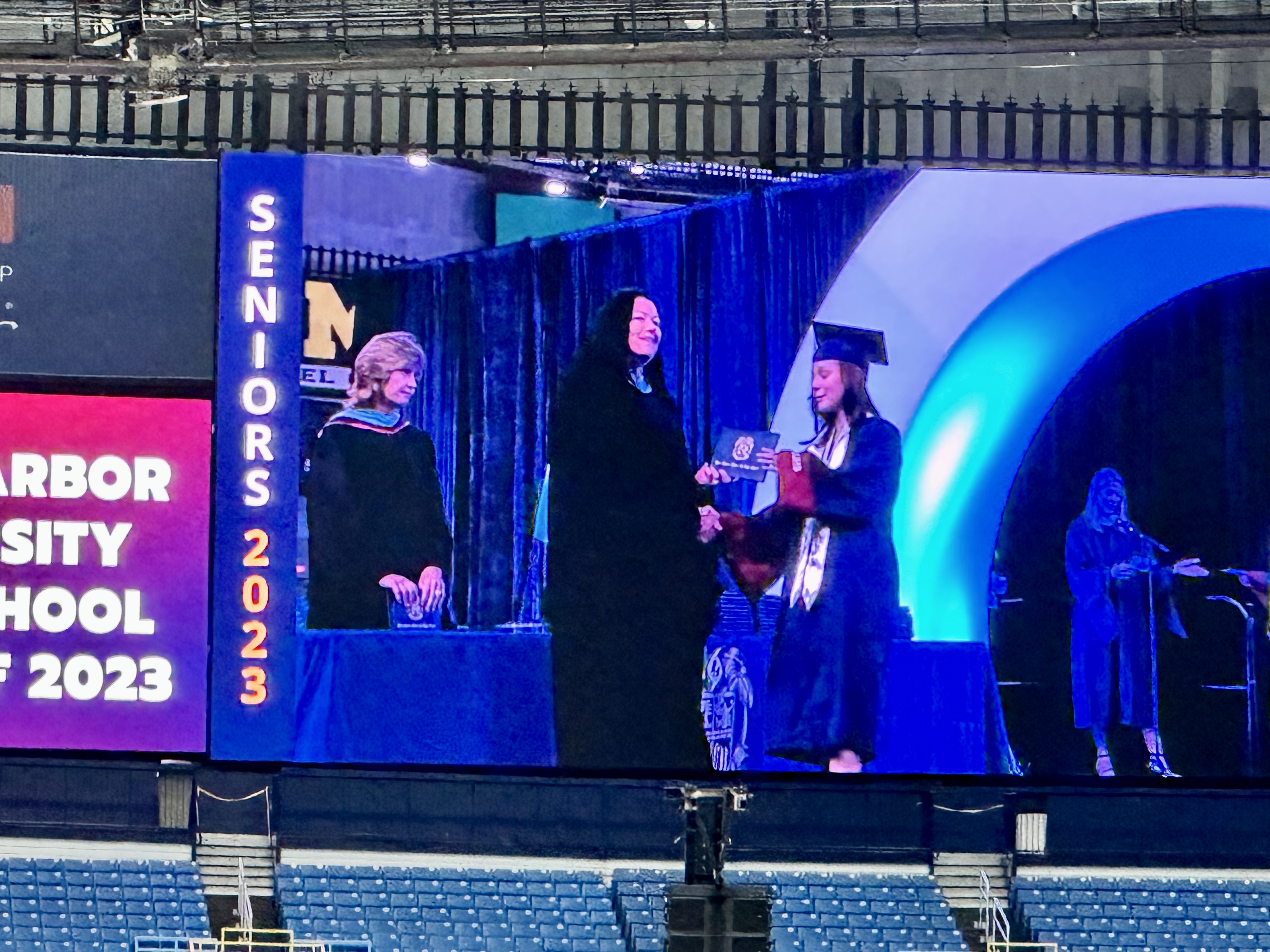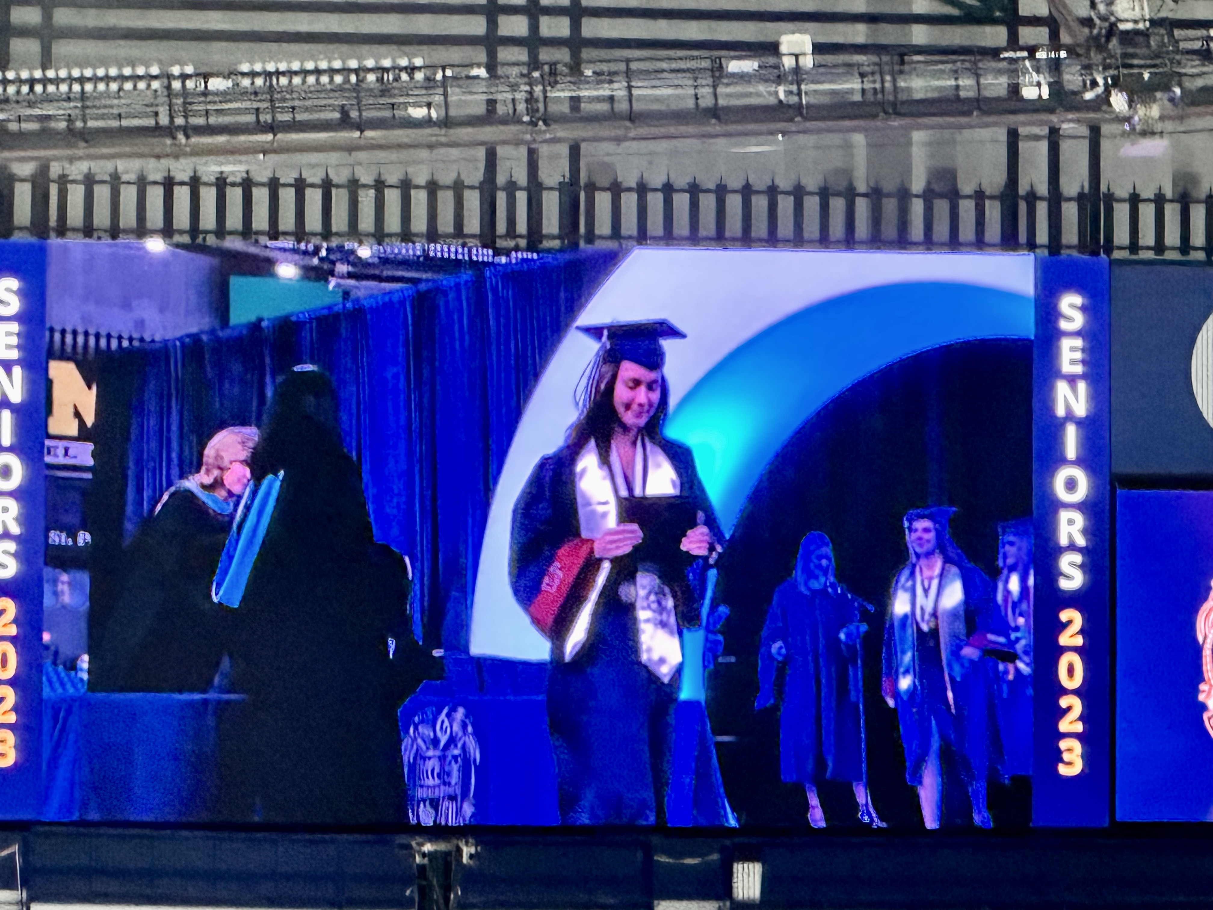 The graduation parade in to the stadium was inspiring, nostalgic and made us proud to be sitting where we were. Then she received her diploma.