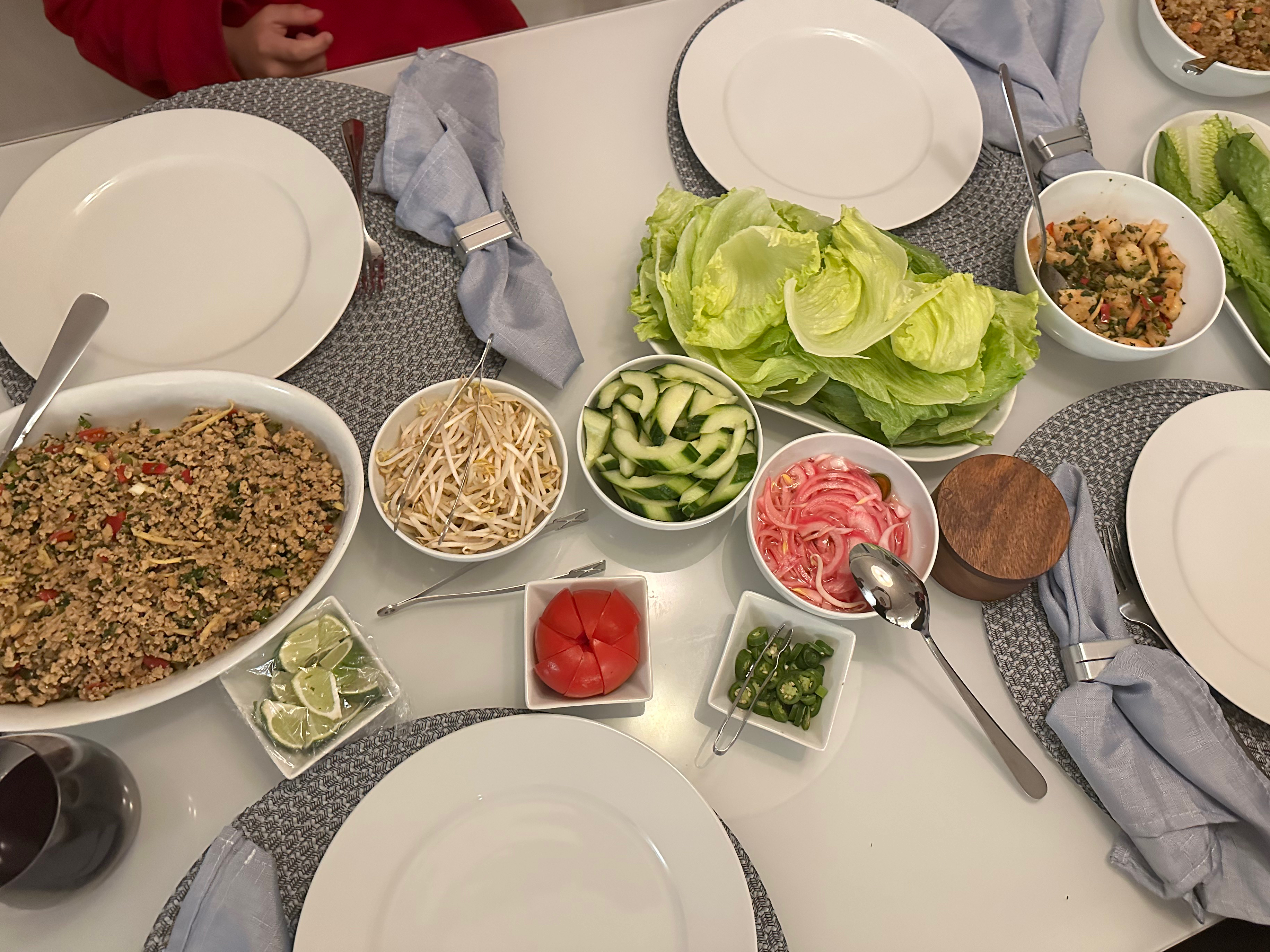 Doug made an amazing chicken lettuce wrap dinner, Sara’s favorite, for our post graduation party.