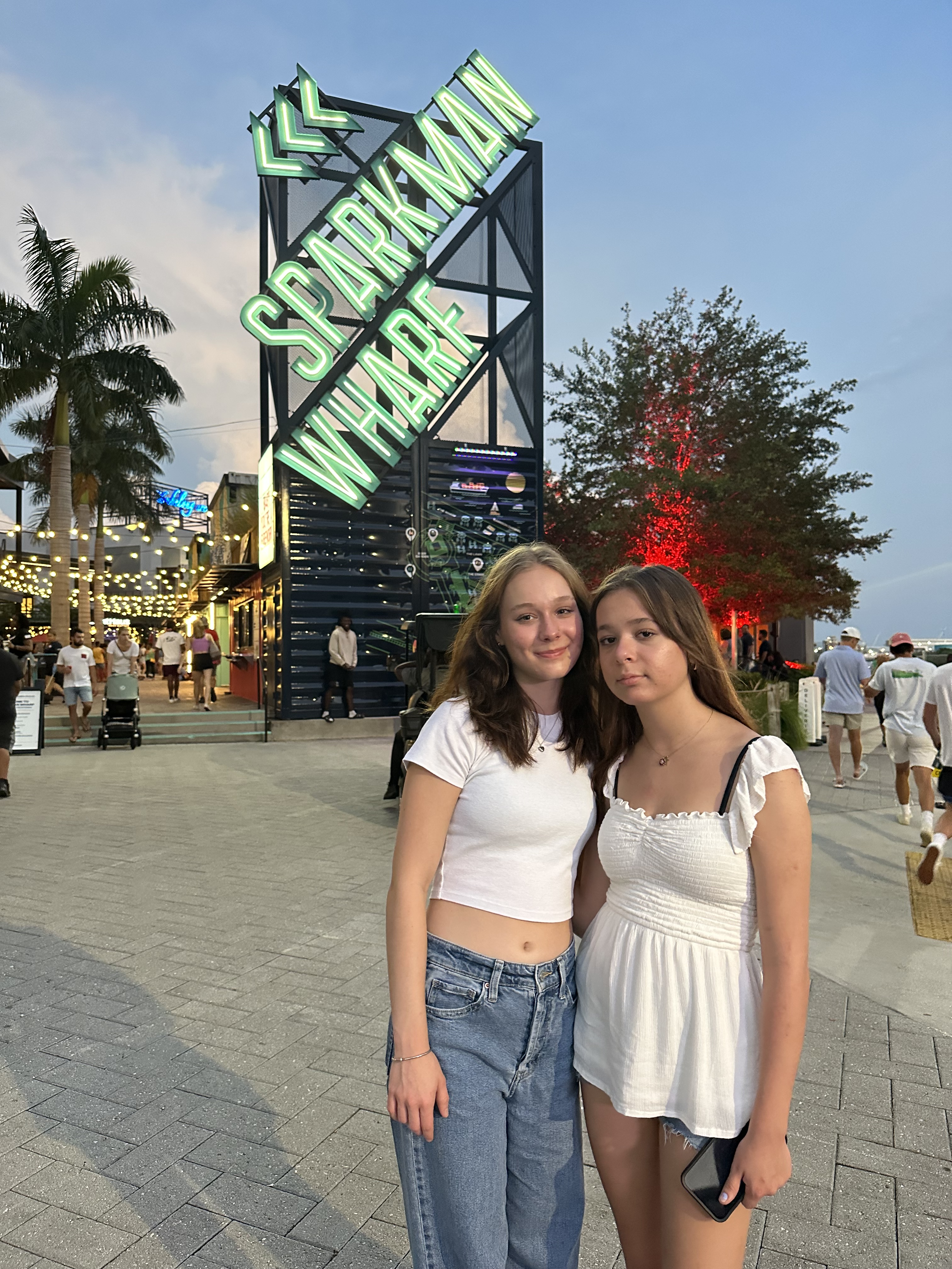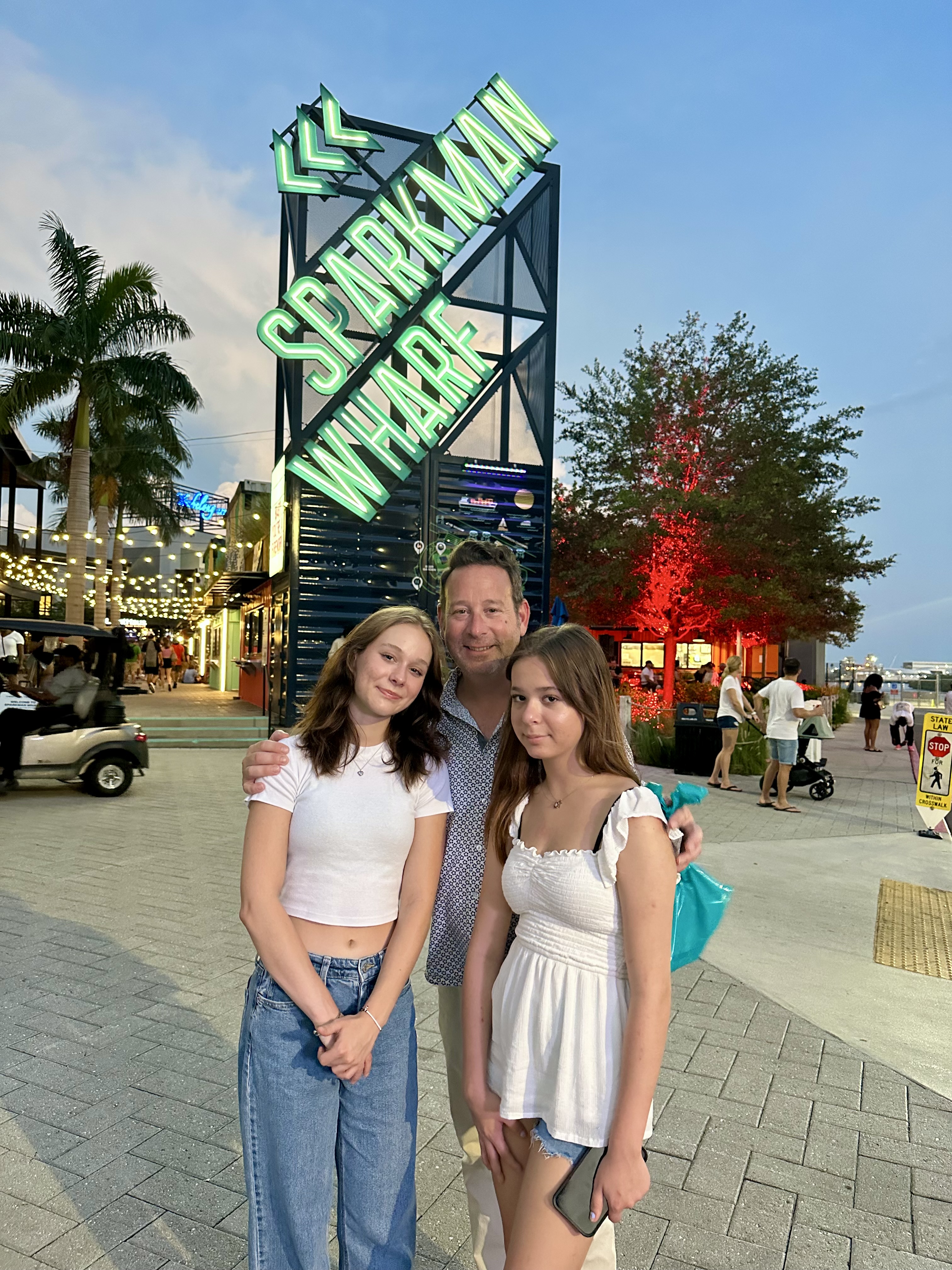 After a lovely Italian meal, birthday crem brulee, and a cappuccino, we headed to Sparkman Wharf for some nightlife on the water and shopping.