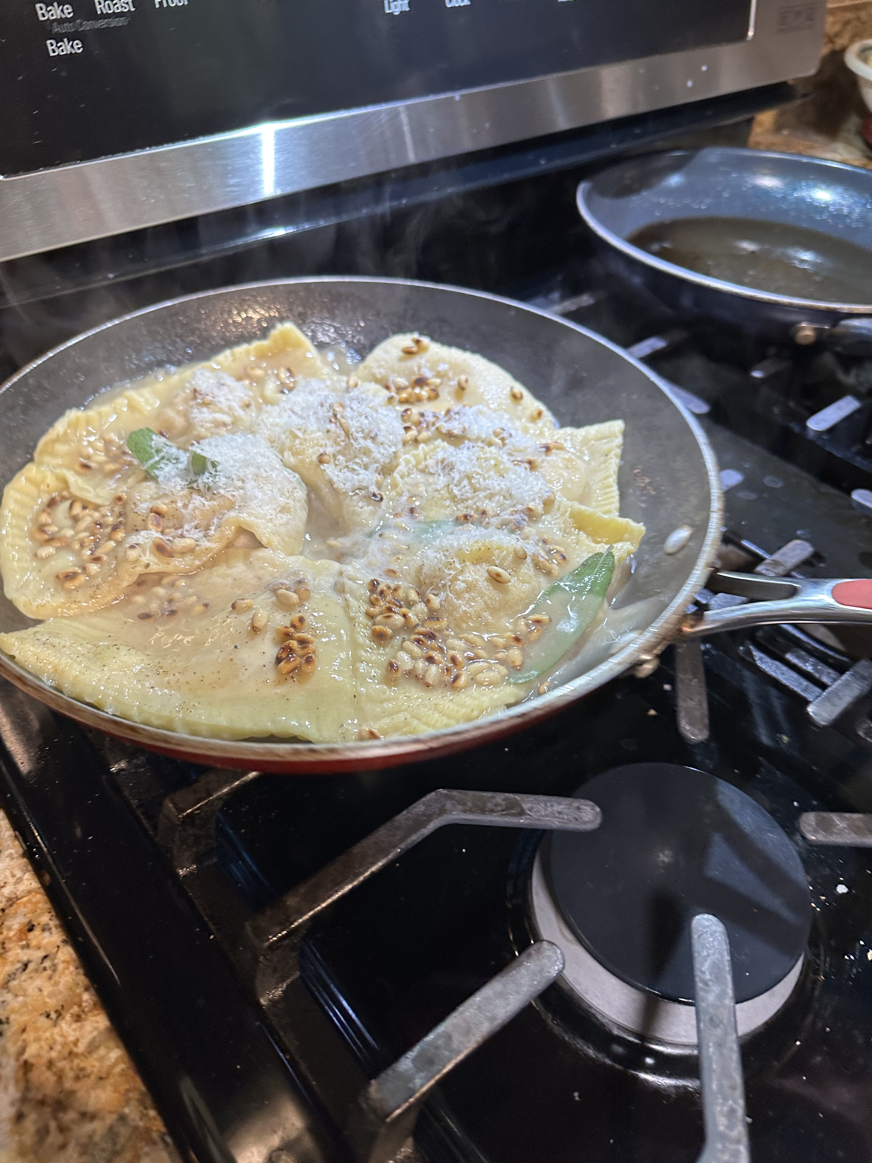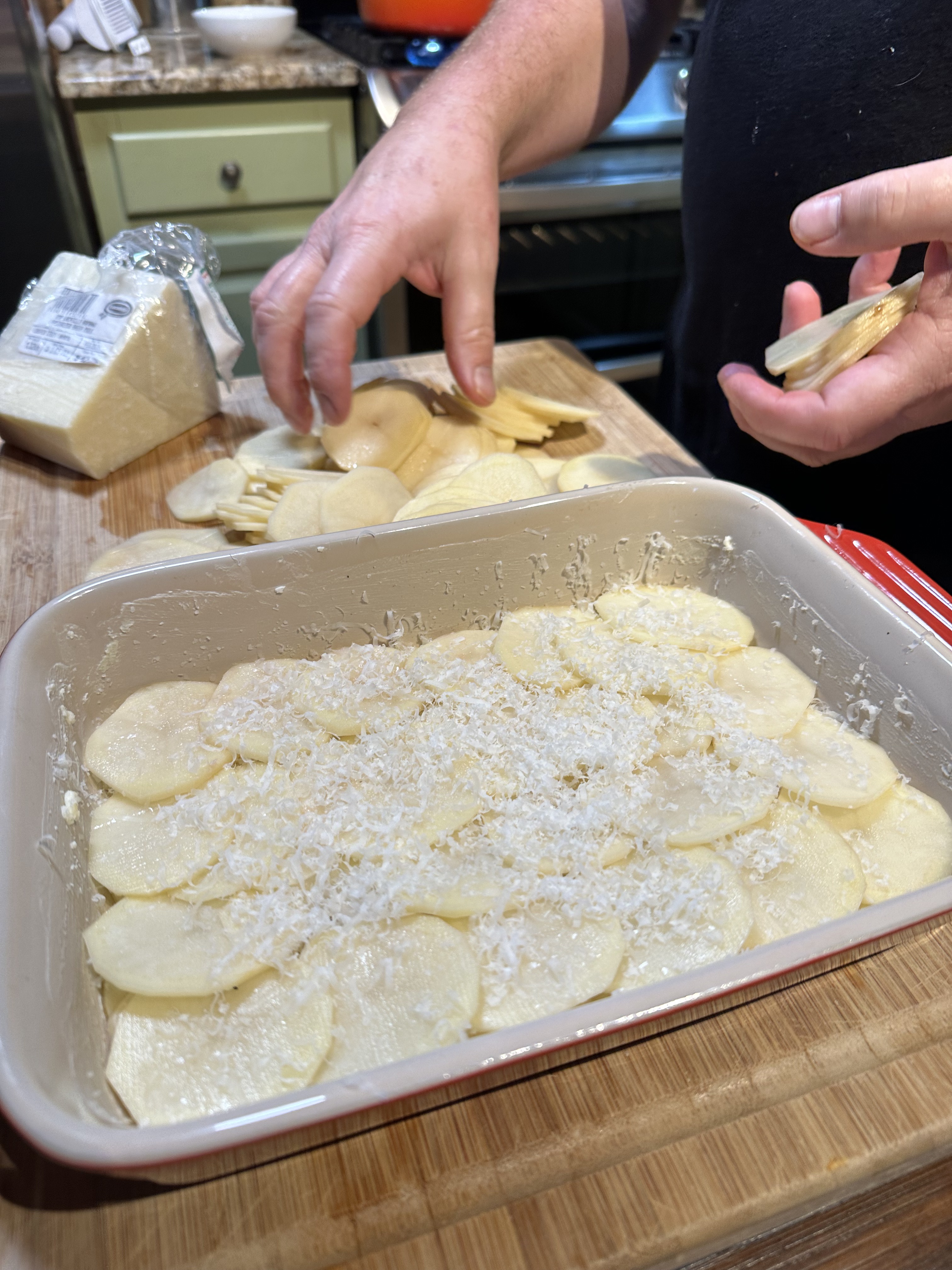 Doug made handmade pasta, homemade bread for Italian beef sandwiches and, homemade mozzarella. WE also enjoyed lambchops and potatoes au gratin.