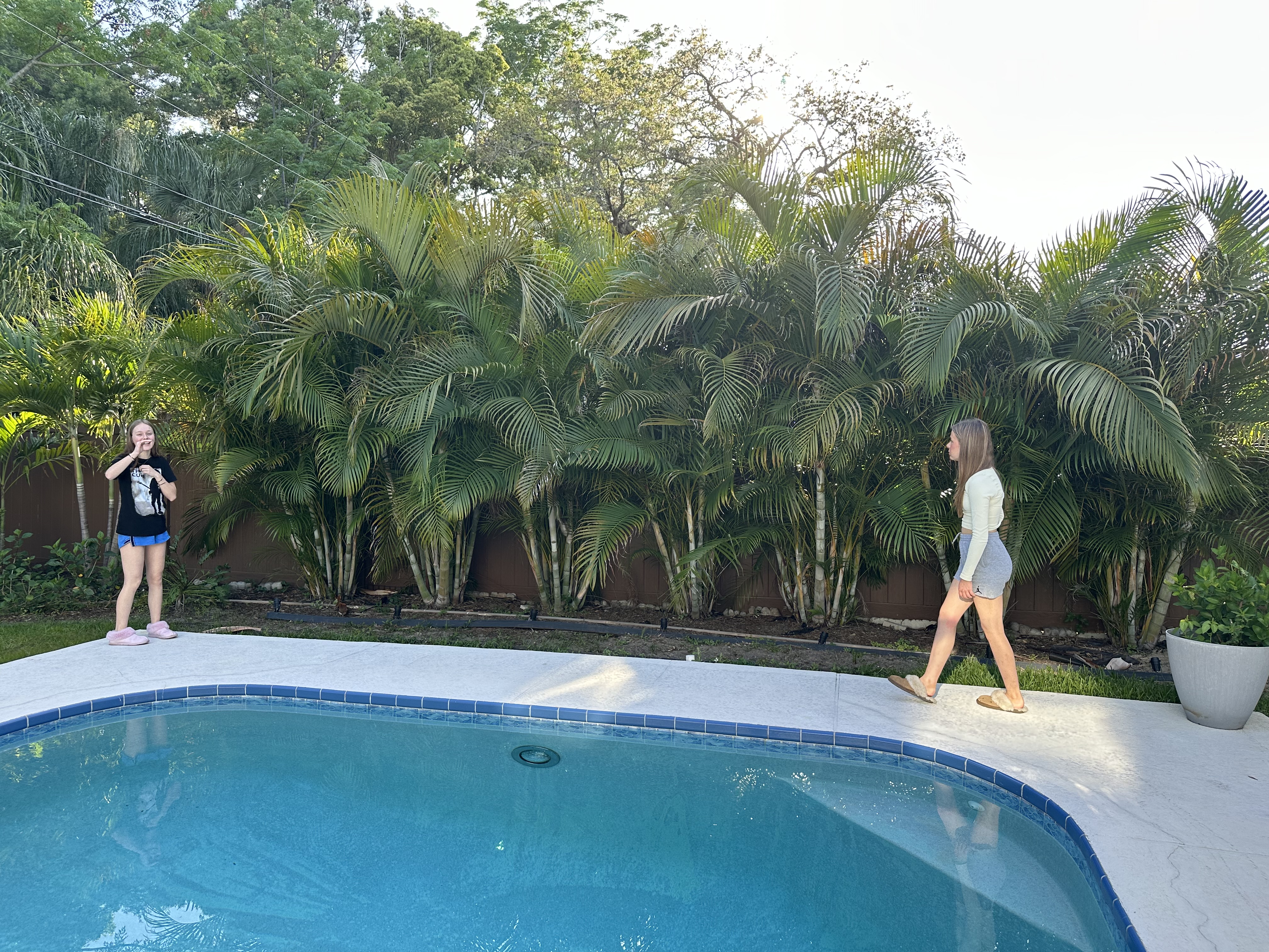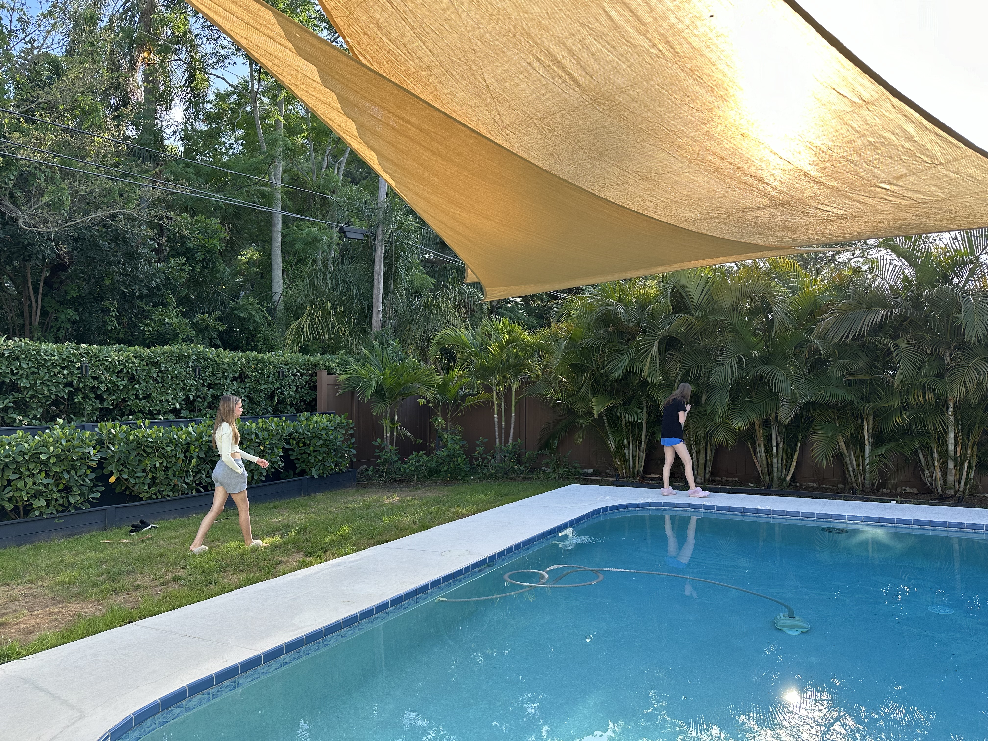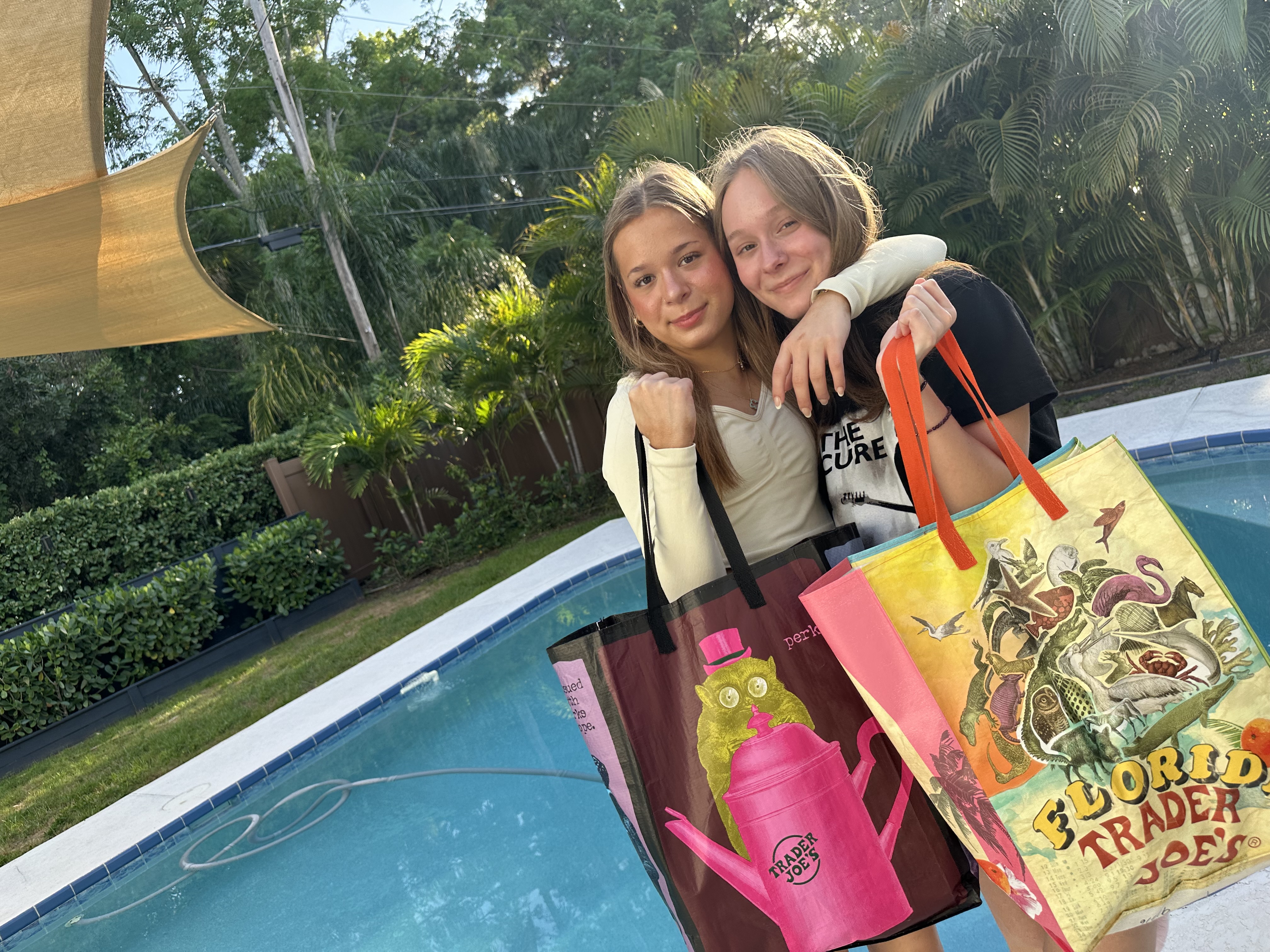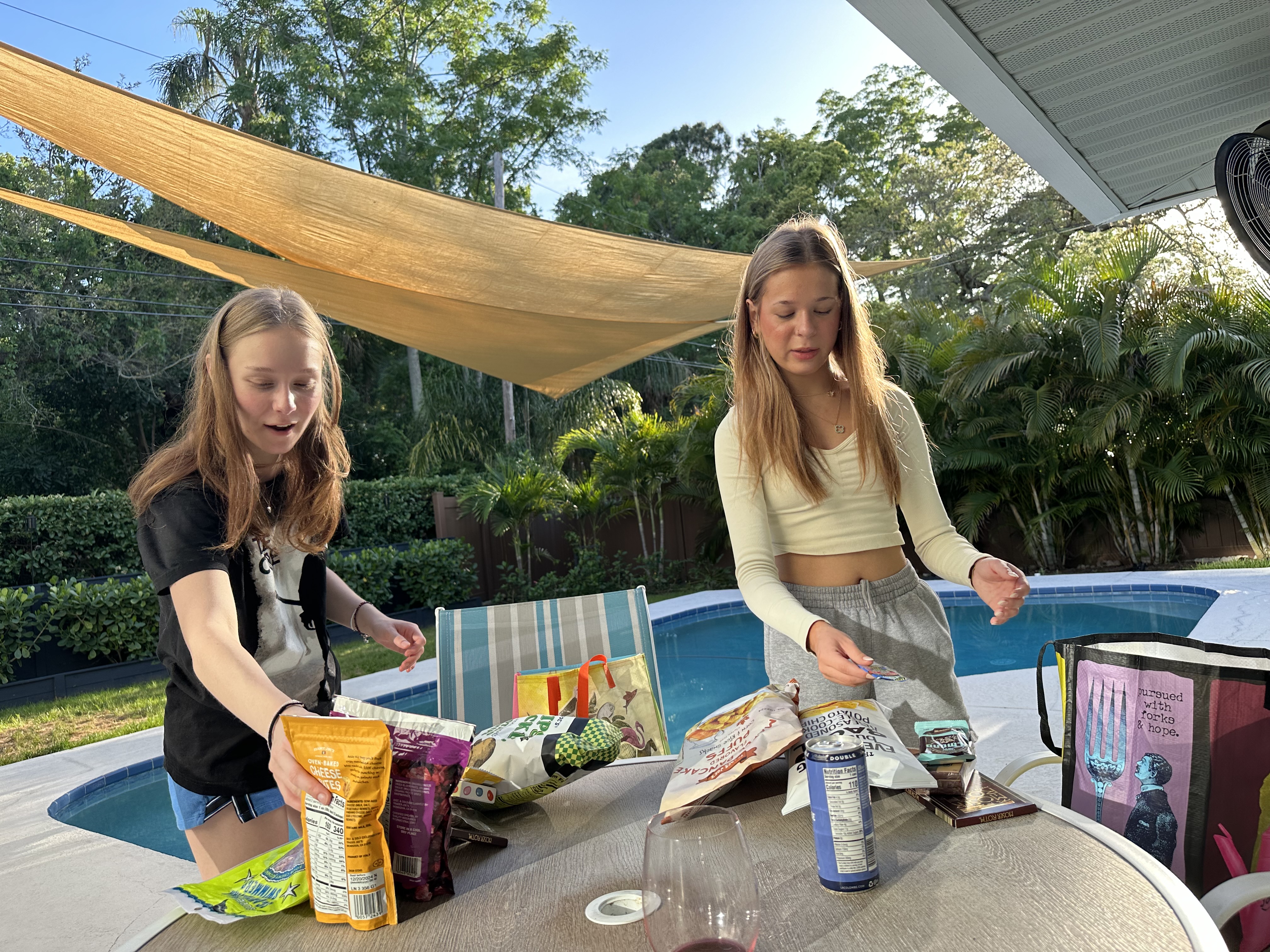 The girls’ Easter baskets like very different than how they used to look years ago. They got Trader Joe’s bags filled with food and snacks this year, but still had to hunt for them in the yard.